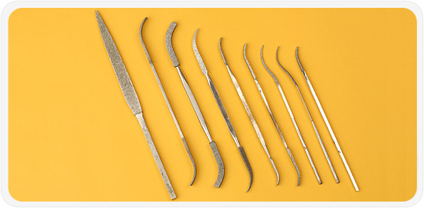 | Electroplated diamond files are processed using carefully selected diamonds with well defined gift sizes to meet exact requirment.It used for virtually any pricision filling.Jobs it available as individual files in shapes shown below and handy assortment |